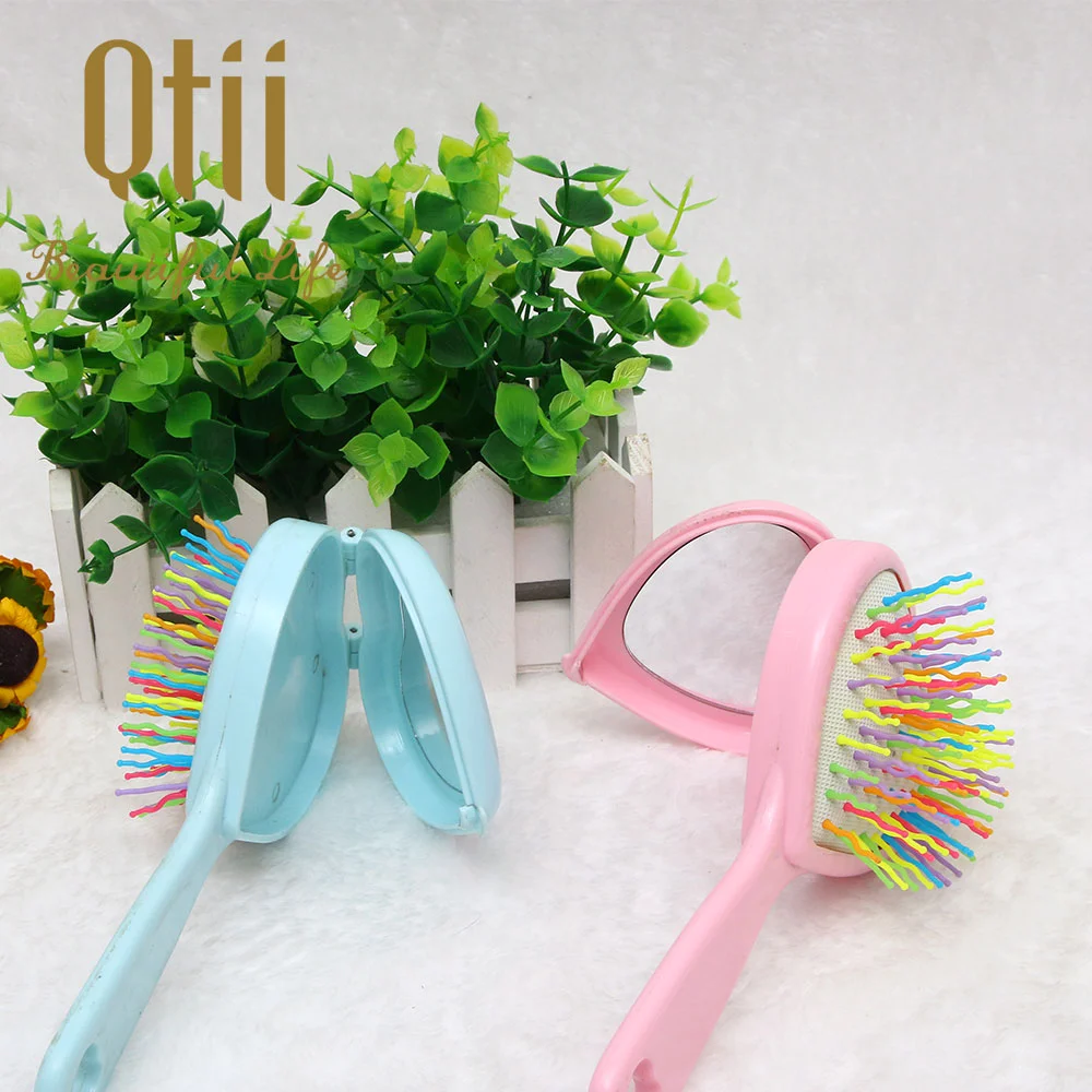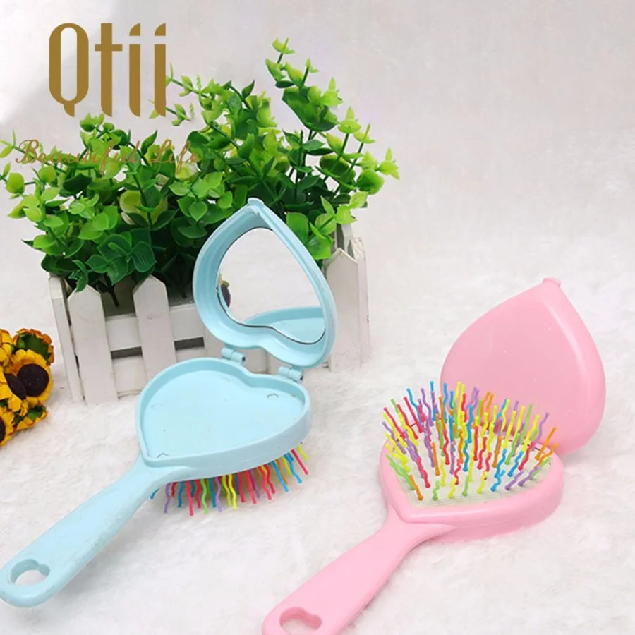 2 in 1 Heart Shaped Paddle Brush with Mirror and Soft Rainbow Bristle for Kids,Grils and Women in Size 17.3x8cm