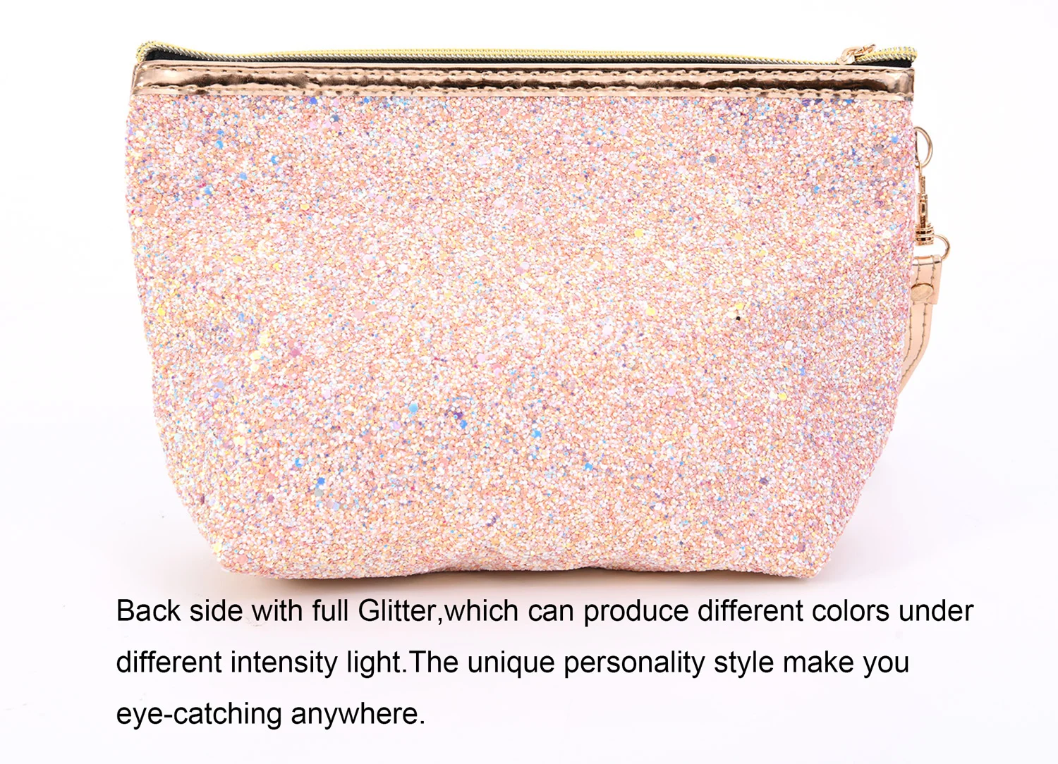 • Colorful Glitter cosmetic pouch with smooth zipper, sparkly and funny, easy to attract all people's vision.