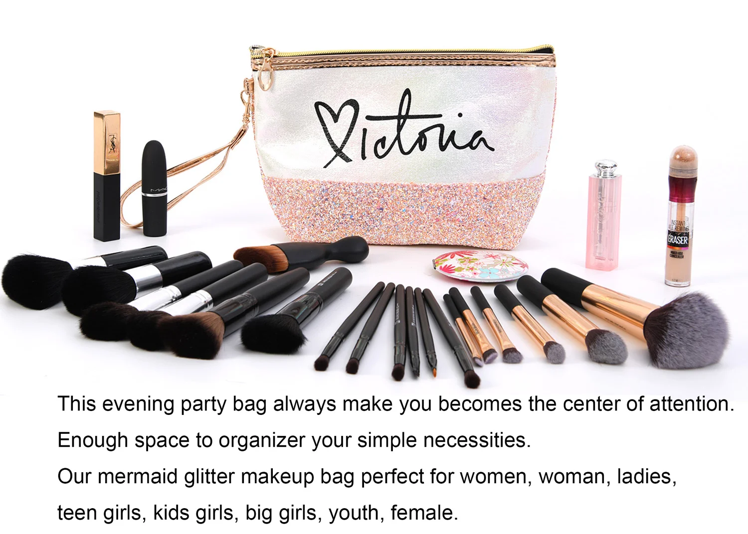 • Perfect for storing numerous cosmetics and other daily use such as lipstick, facial cleanser, eyebrow pencils, mascara, jewelry,perfume, keys, coins and so on.
