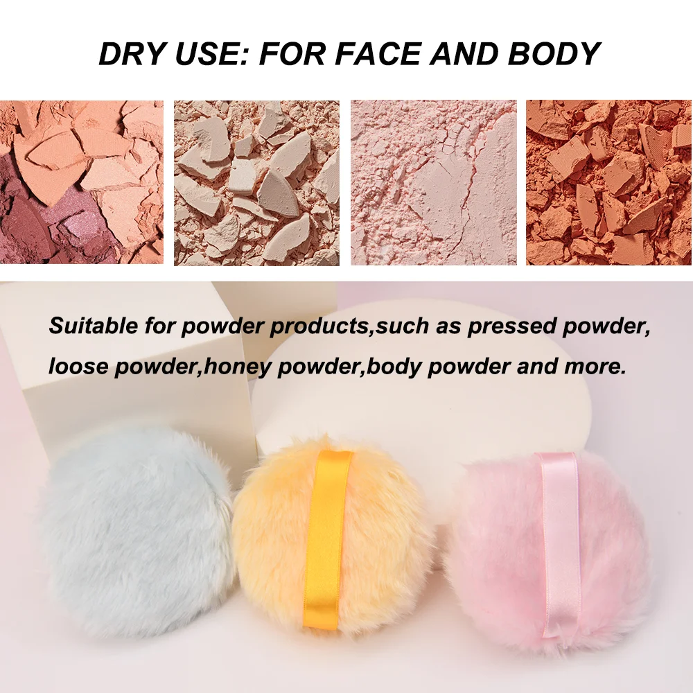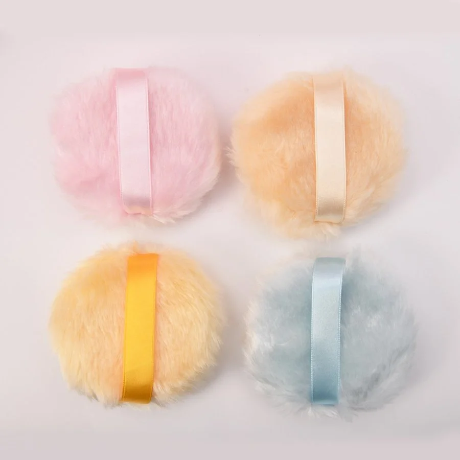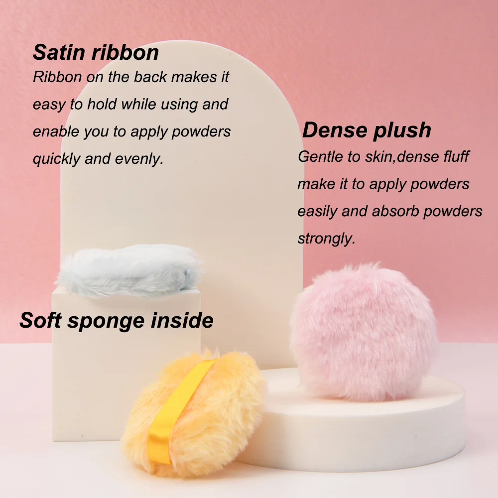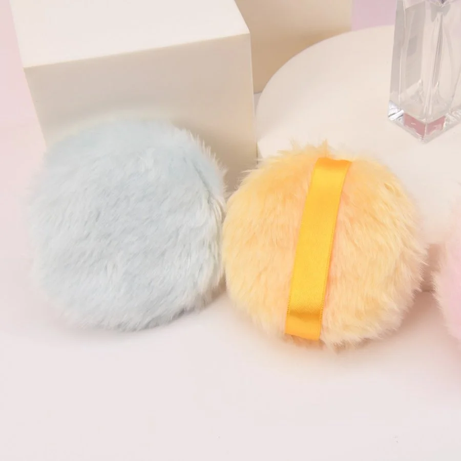 Dense Fluff Plush Cosmetic Powder Puff with Satin Ribbon Big size 10*3cm