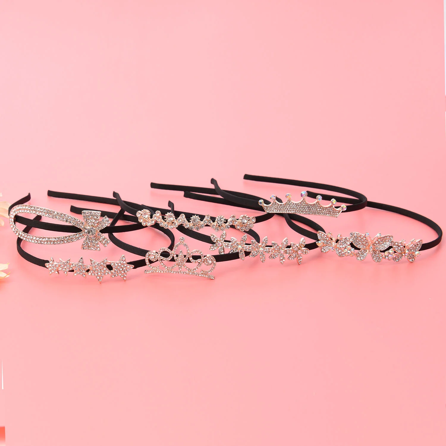 * Seven classic design, with crystal shiny look. black fabric outside the band, not easy to slip can hold hair tightly