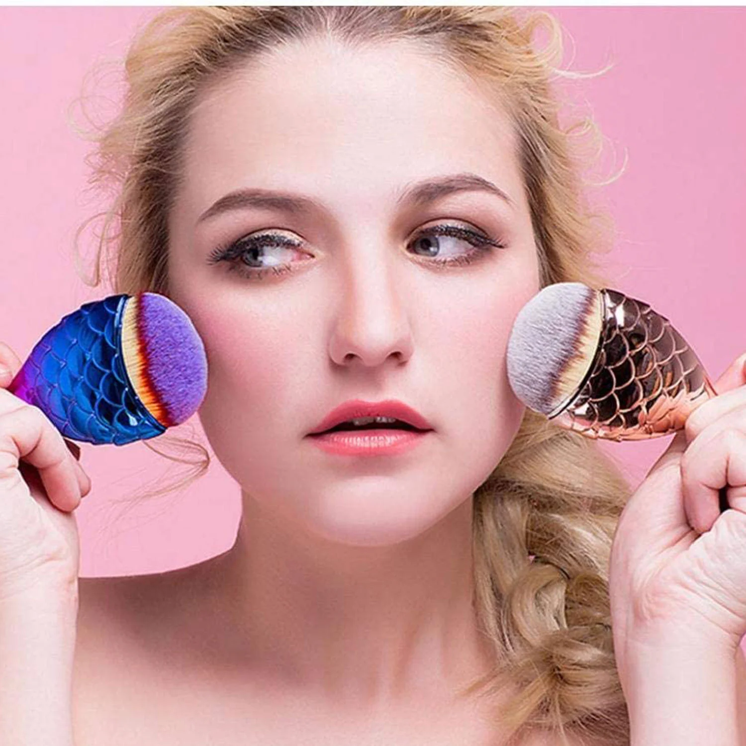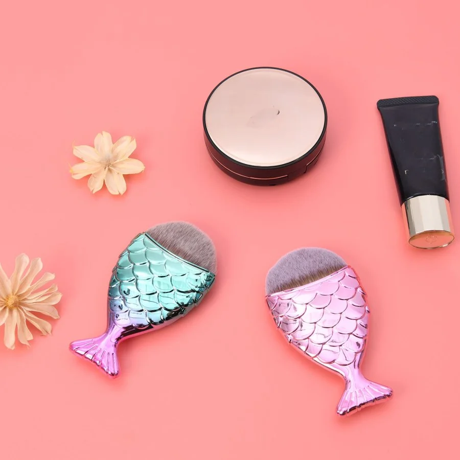 Unicorn Color Mermaid 1PC Premium Synthetic Makeup Fishtail Blush Contour Blending Foundation Brush