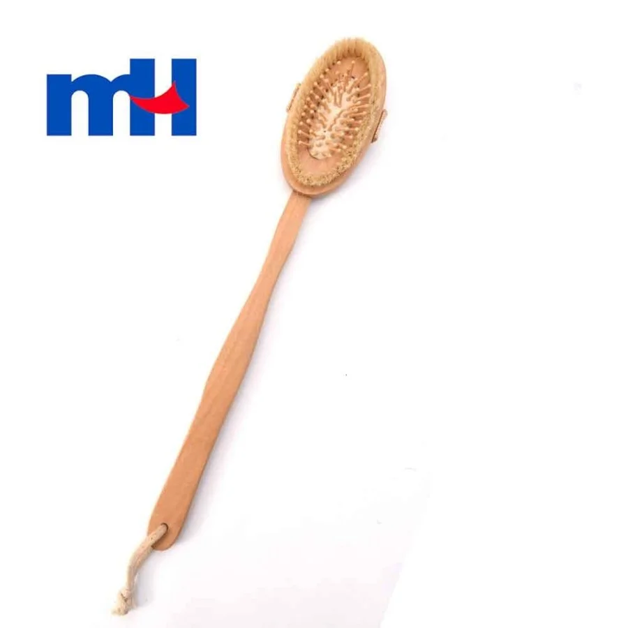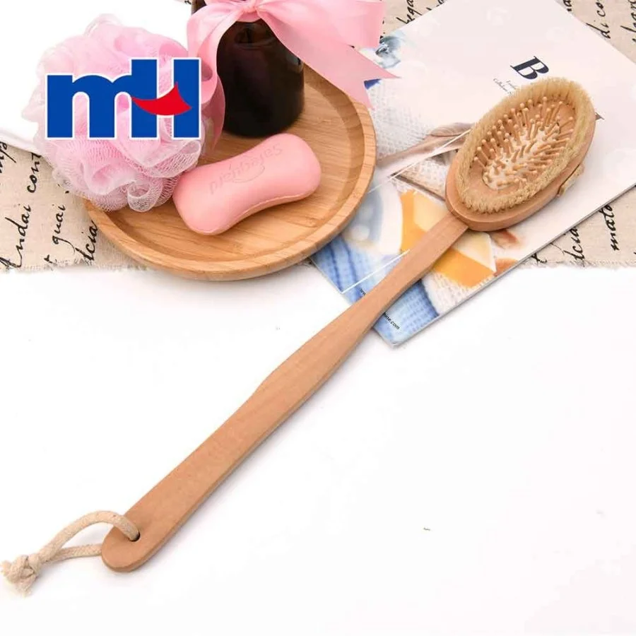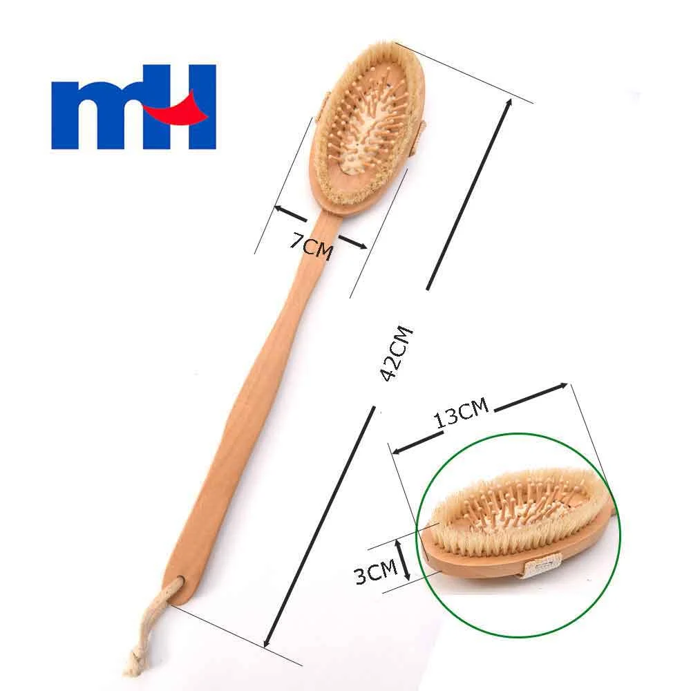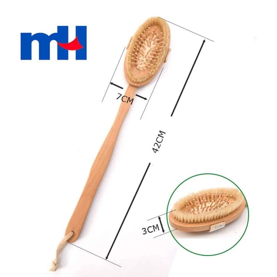 Natural Bristles Shower Brush with Long Handle for Back Scrubber, Wooden Massager Brush, 42*7cm