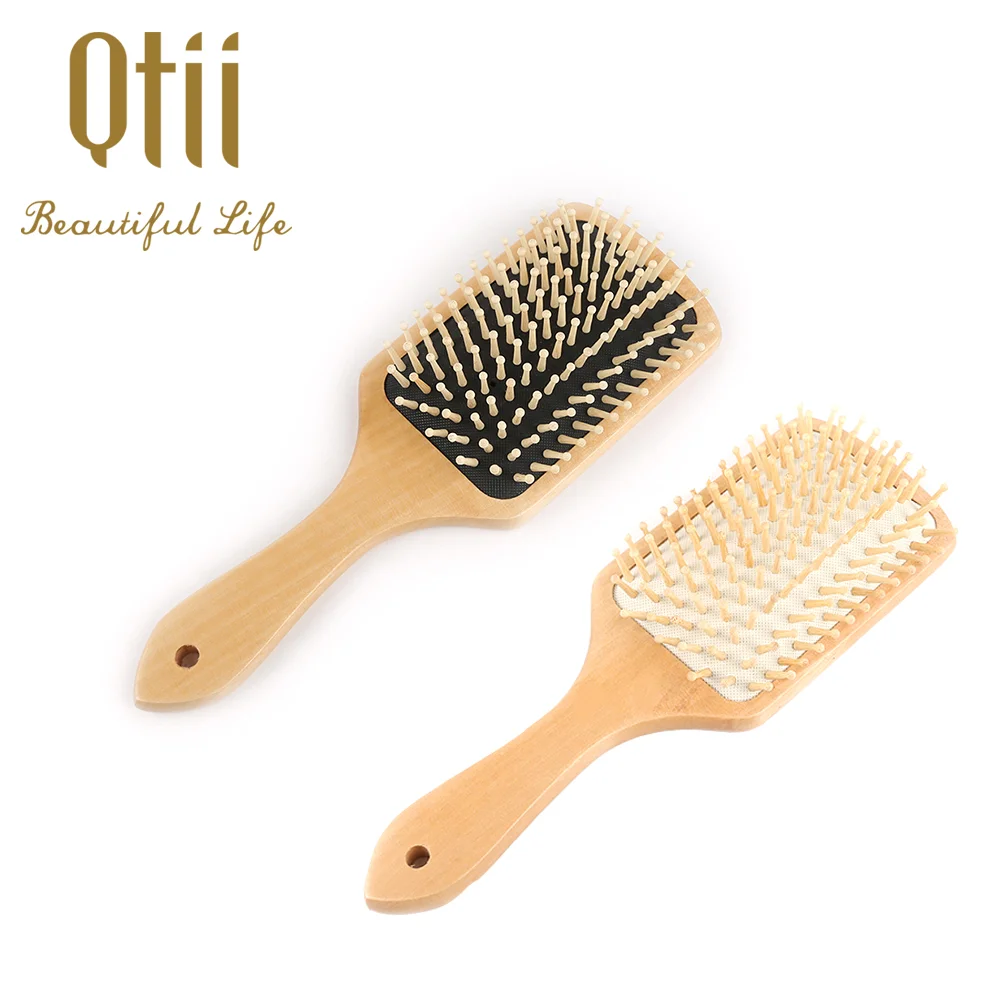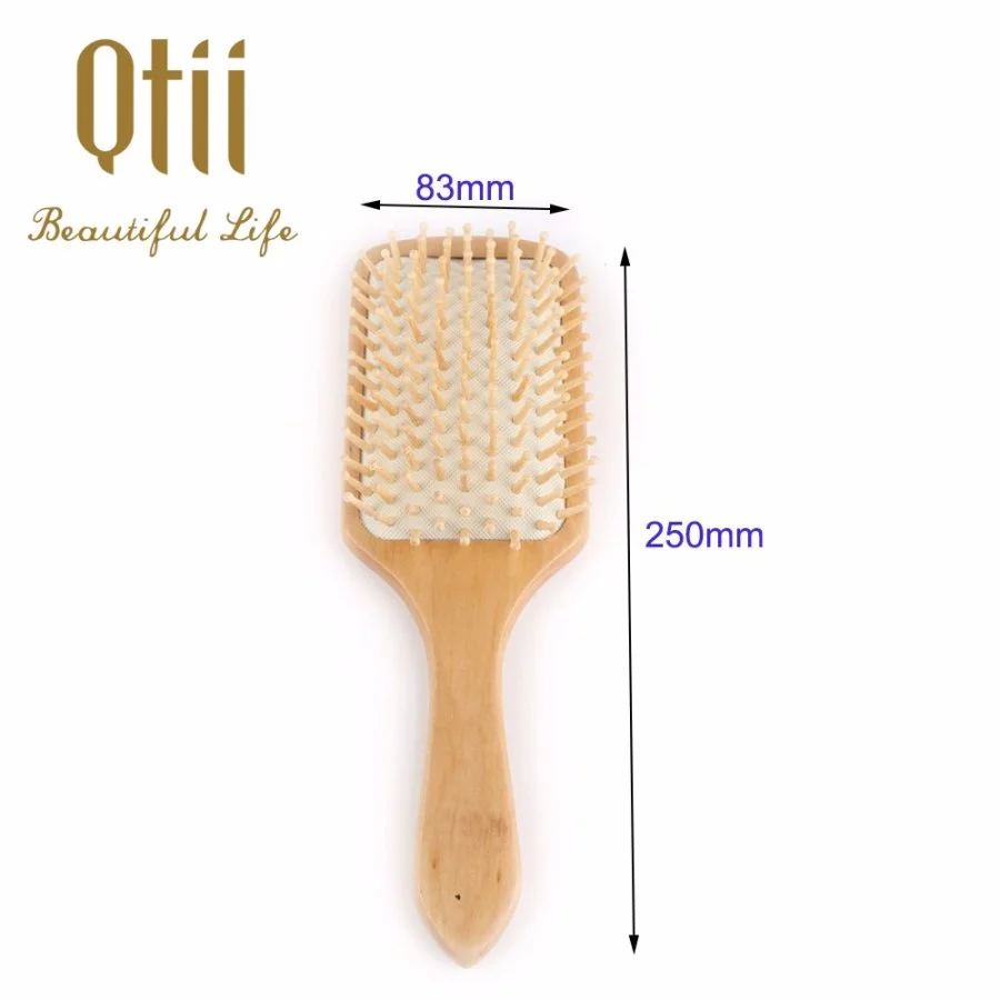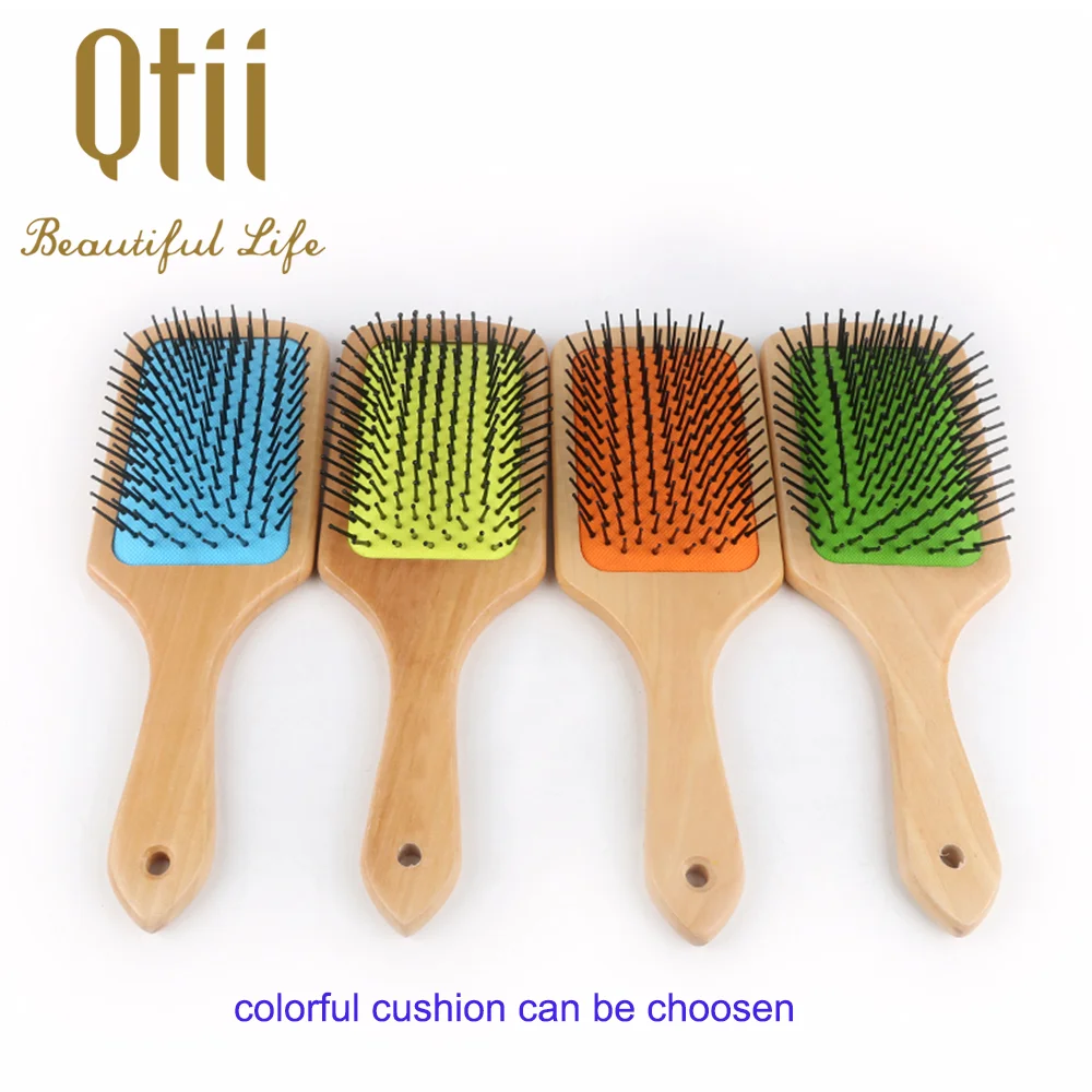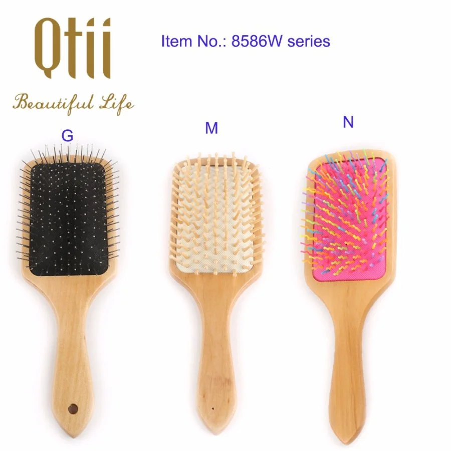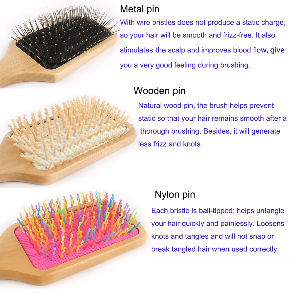Paddle Detangling Wooden Hair Brush with Wire Pin, Natural pin, Wooden Pin or Rainbow Nylon Pin in Size 8.3x25cm