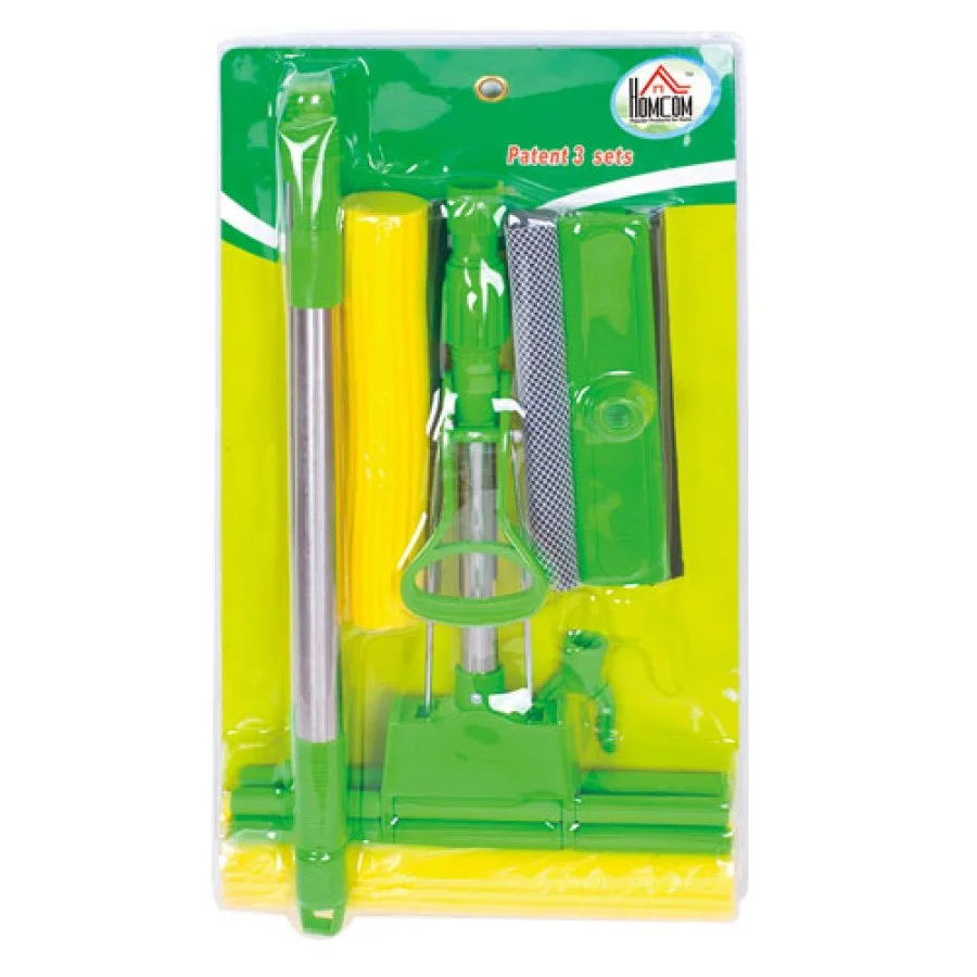 Material: stainless steel tube, pp fork, double roller Spare mop head refill Sponge window wiper Packing: 118*31*36cm/12sets